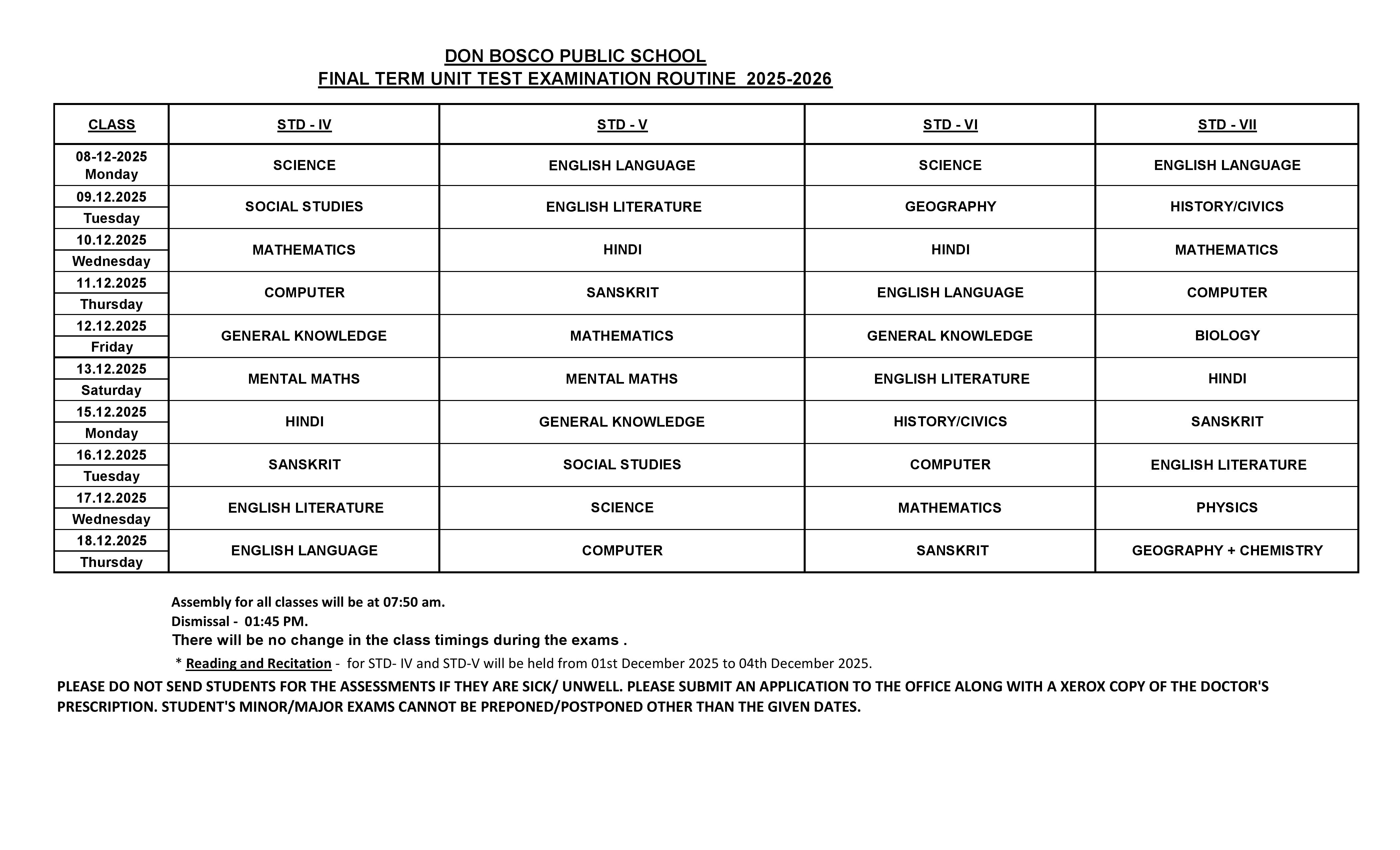 Exam Notice and Routine